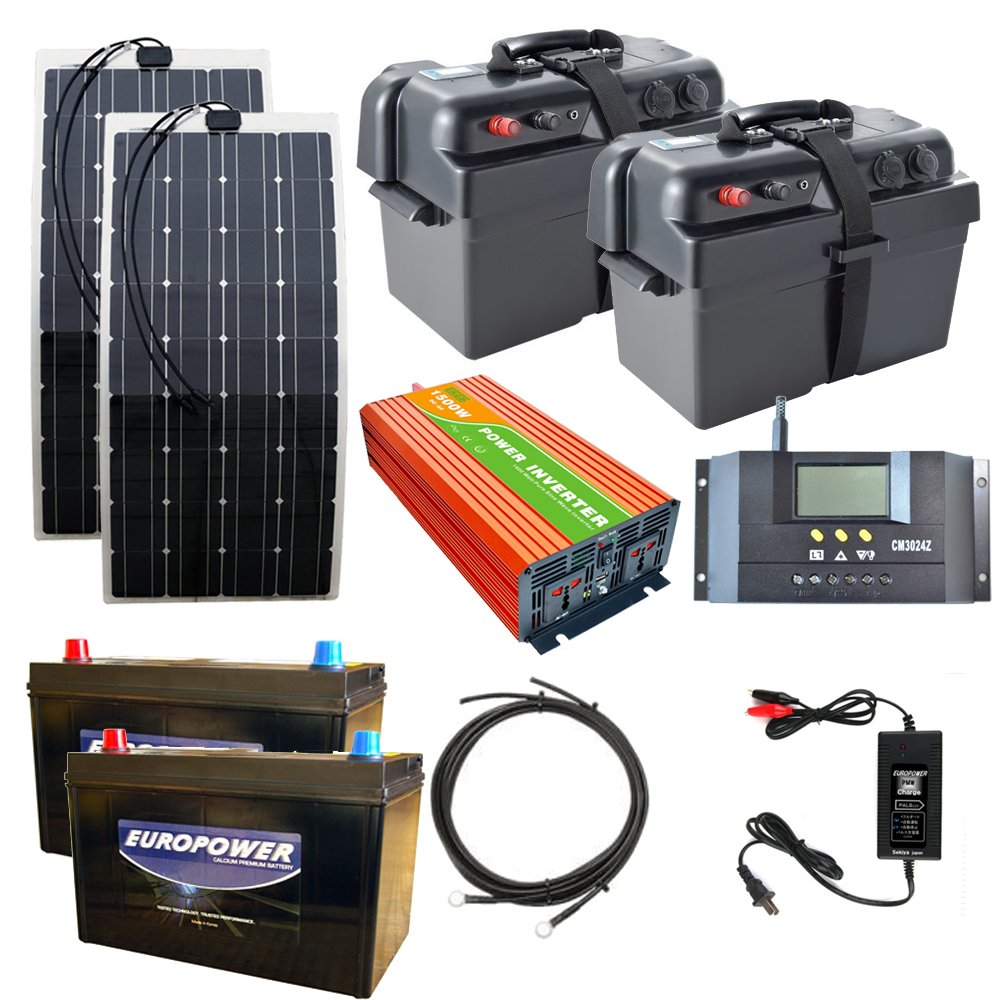セット内容 ・サイクルバッテリー(鉛蓄電池)1200W×2 ・残量モニタ付バッテリーBOX×2 ・フレキブルソーラーパネル100w×2 ・1500Wインバータ ・20Aチャージコントローラー ・ACバッテリー充電器 スペック ■サイクルバッテリー(鉛蓄電池)1200W ※九州経済産業局認定技術を有するバッテリー専門店から直送。